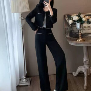 Chic Two-Piece Set for Women – Elegant Top and Wide-Leg Pants Outfit