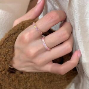 Dopamine Pink Zircon Ring β Colorful PavΓ© Stacking Band, Light Luxury Style