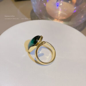 Elegant Green Statement Ring for Women – Adjustable Fashion Open Ring, Minimalist Niche Design