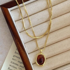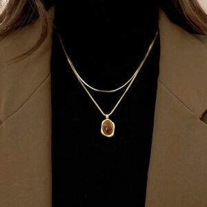 Elevate your fall and winter style with this amber layered gold sweater necklace, designed for women who appreciate subtle luxury