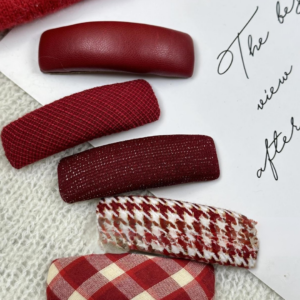 This red plaid and houndstooth BB hair clip adds a warm and elegant accent to your hairstyle. Designed with a
