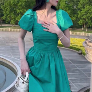 This Shenzhen Nanyou puff sleeve dress blends French retro charm with a slimming waist and elegant long skirt. Ideal for