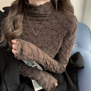Elevate your stylish and comfortable Plus Size Soft Turtleneck T-shirt. Made from a stretchy, high-quality fabric, this fitted long-sleeve top