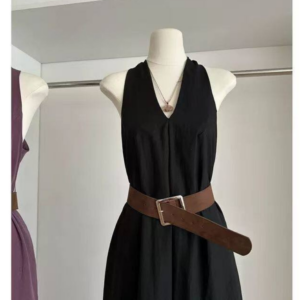 This black V-neck halter neck maxi dress is designed for a sophisticated and mature feminine look. The sleeveless silhouette and