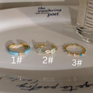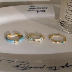 Blue Enamel Mother-of-Pearl Ring β Light Luxury Summer Statement Ring for Women