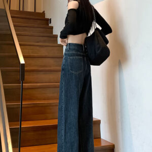 Effortlessly elevate your style with our Blue and Gray High-Waisted Wide-Leg Jeans. The loose straight fit and floor-length design provide