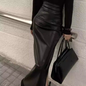 Black PU Leather High-Waist Midi Skirt β Sexy Slimming Bodycon Skirt with Slit for Spring (Copy)