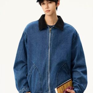 Retro Washed Blue Clean-Fit Denim Jacket for Men