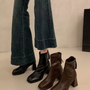 These elegant square toe ankle boots feature a sleek stretch-fit design that flatters the leg line. The soft, flexible material