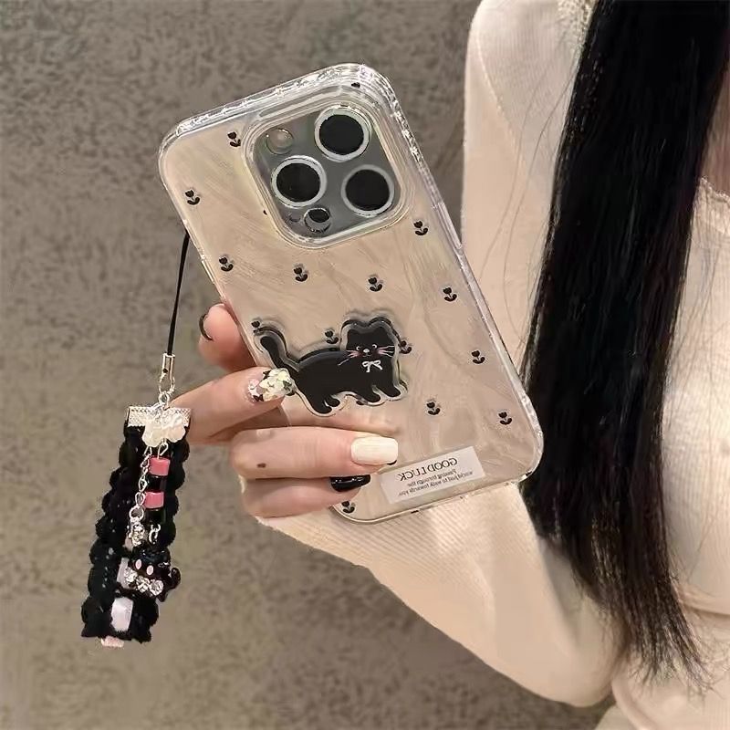 Adorable black cat and floral phone case made from soft TPU material. Lightweight, shockproof, and flexible for everyday protection. Slim design ensures easy access to buttons and ports. Perfect for a trendy and cute look.
