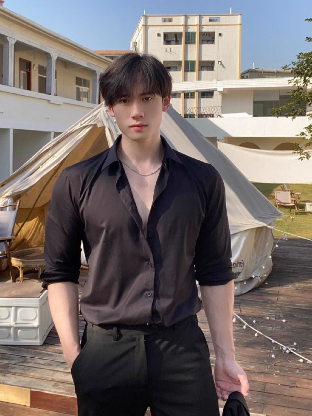This black minimalist long sleeve shirt features a sleek tailored design that exudes quiet confidence and refined style. Crafted from smooth, draping fabric, it offers both comfort and structure. The clean lines and subtle sheen create a sophisticated look that transitions effortlessly from casual outings to formal moments.