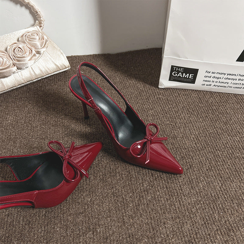 Burgundy Pointed Toe High Heels – Elegant Bow Detail