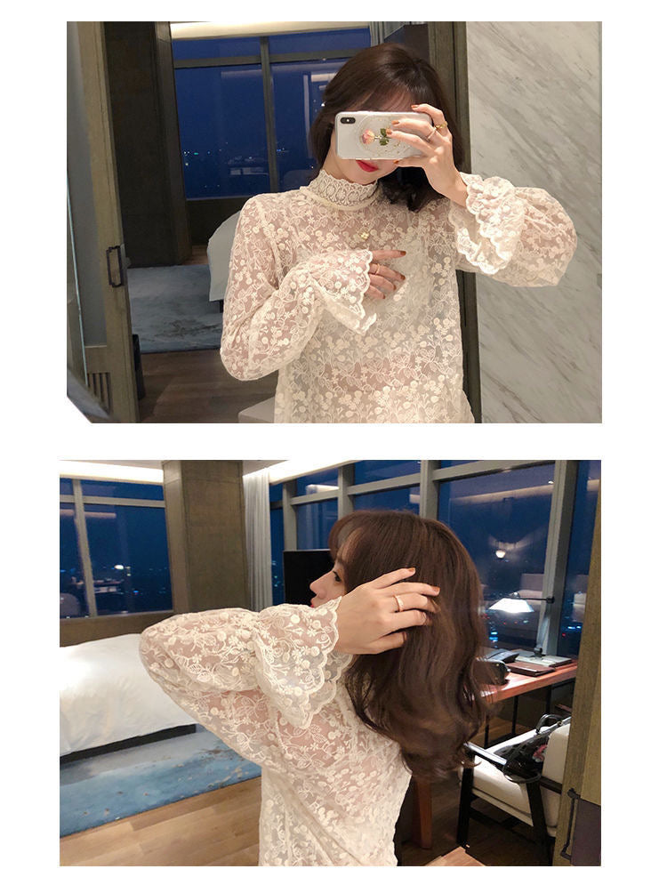 Chic Lace Mesh Blouse – Semi-Turtleneck Elegant Base Layer