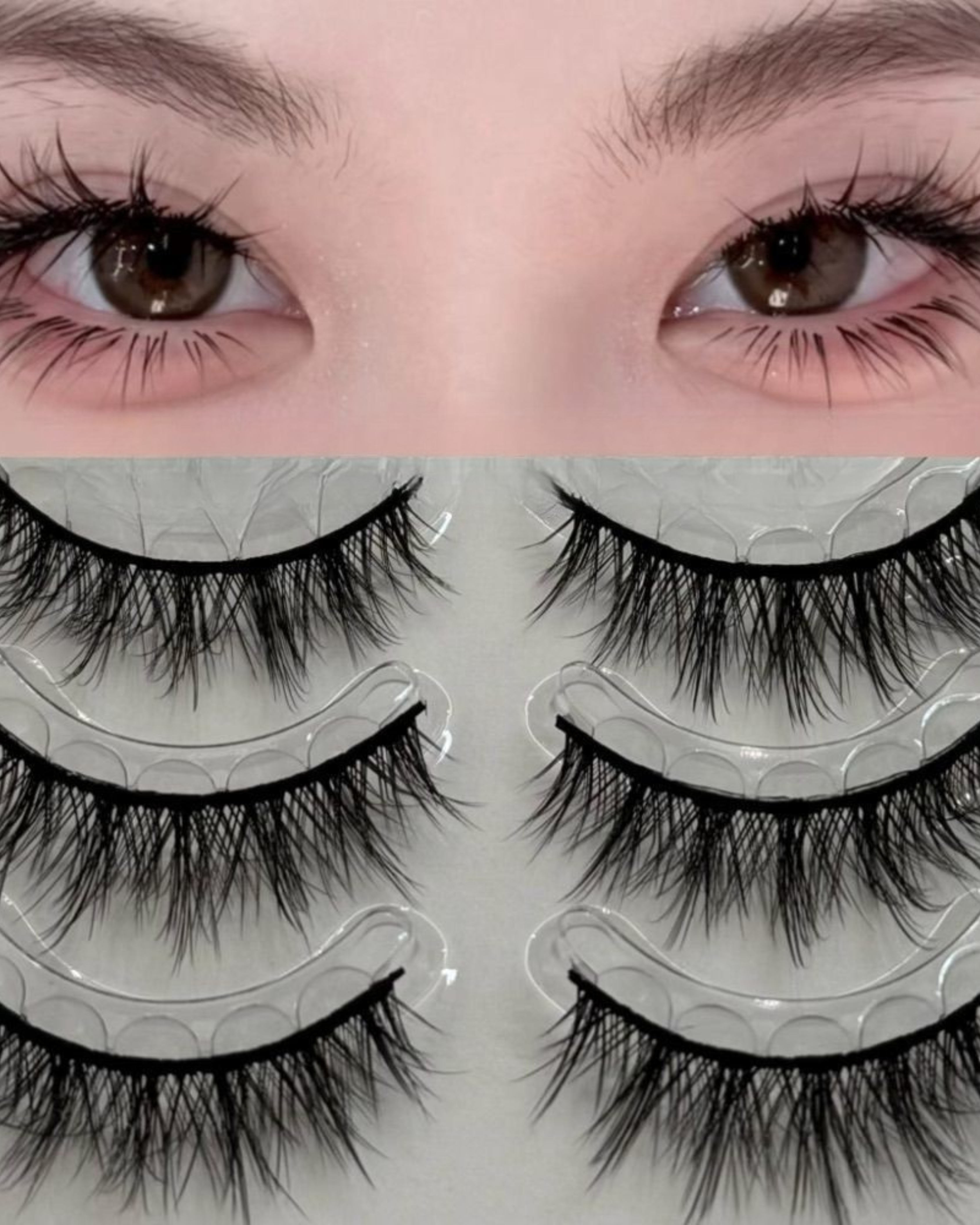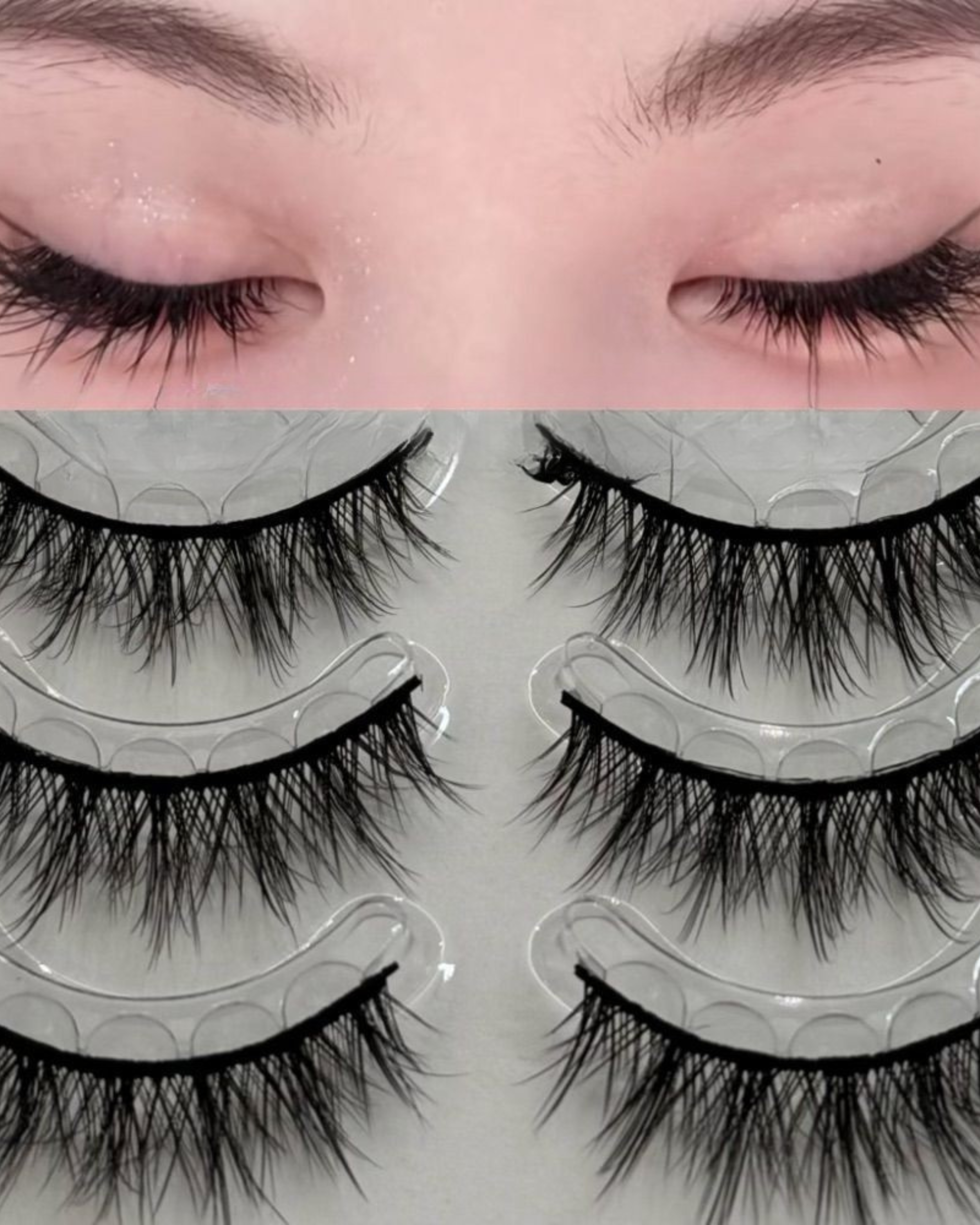 Elevate your eye makeup with these 5D Plush Comic-Style Wet Look False Eyelashes. Designed in a one-piece band for effortless application, these glue-free lashes create a bold yet fluffy manga-inspired effect with a glossy, freshly-wet finish. The 5D layered fibers add dramatic volume while staying lightweight and comfortable for all-day wear. Perfect for daily glam, soft girl aesthetics, or full cosplay looks, they instantly enlarge and define the eyes with a dreamy, doll-like charm. Reusable and easy to apply, these lashes blend seamlessly with your natural lash line for a flawless, eye-catching finish.