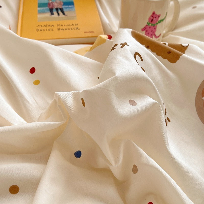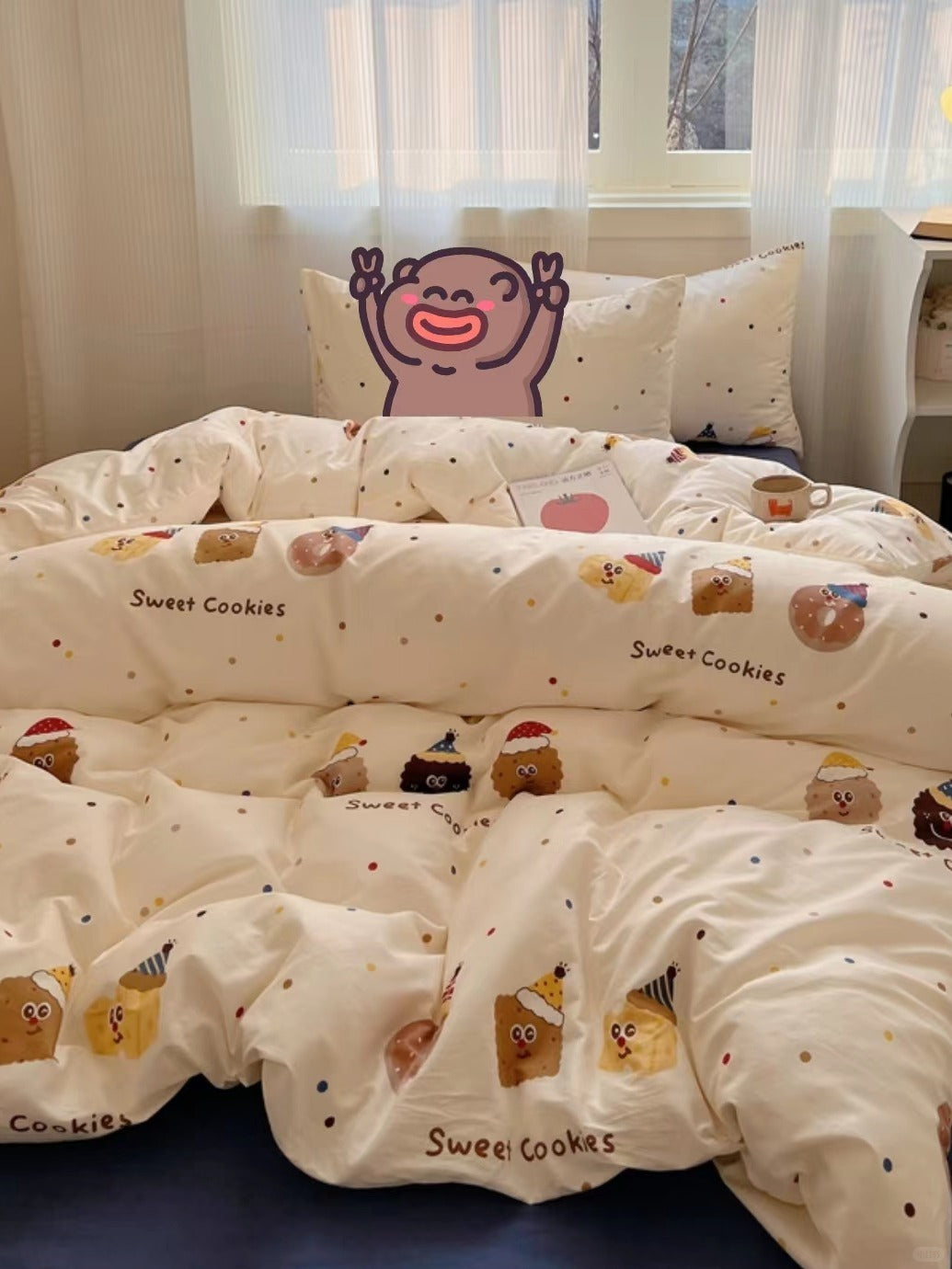 Enhance your bedroom with the adorable Cream-style Korean Sweet Cookies Monster bedding set. Made with high-quality materials, this set offers a comfy and stylish sleep experience. Bring a touch of cuteness to your room with this unique and charming bedding set.