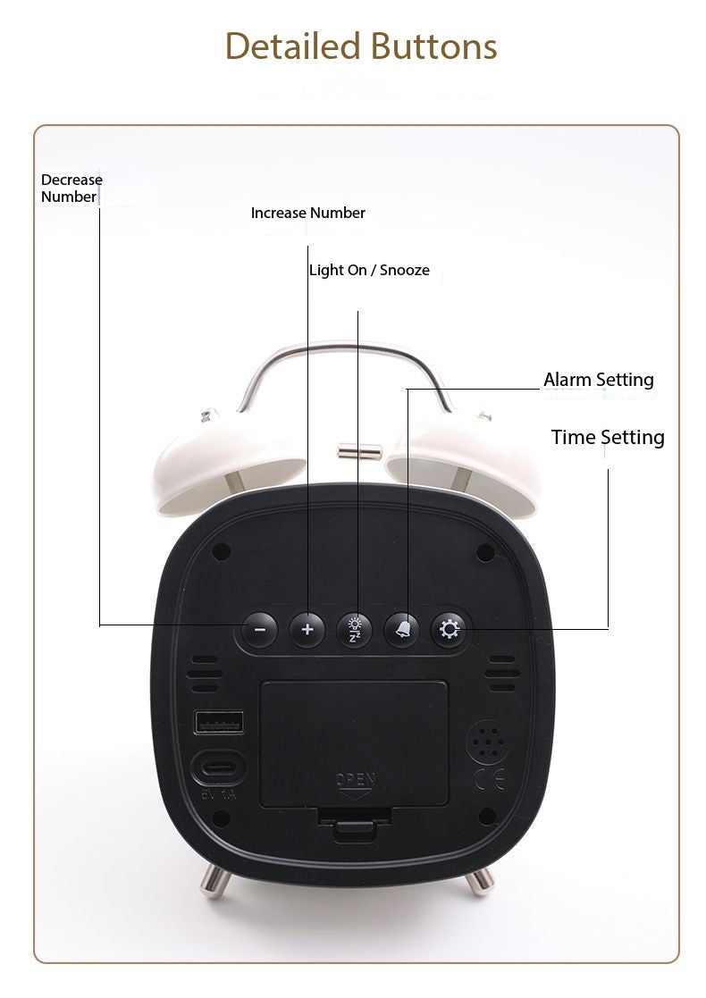 Creative Loud Metal Bell LED Alarm Clock for Heavy Sleepers