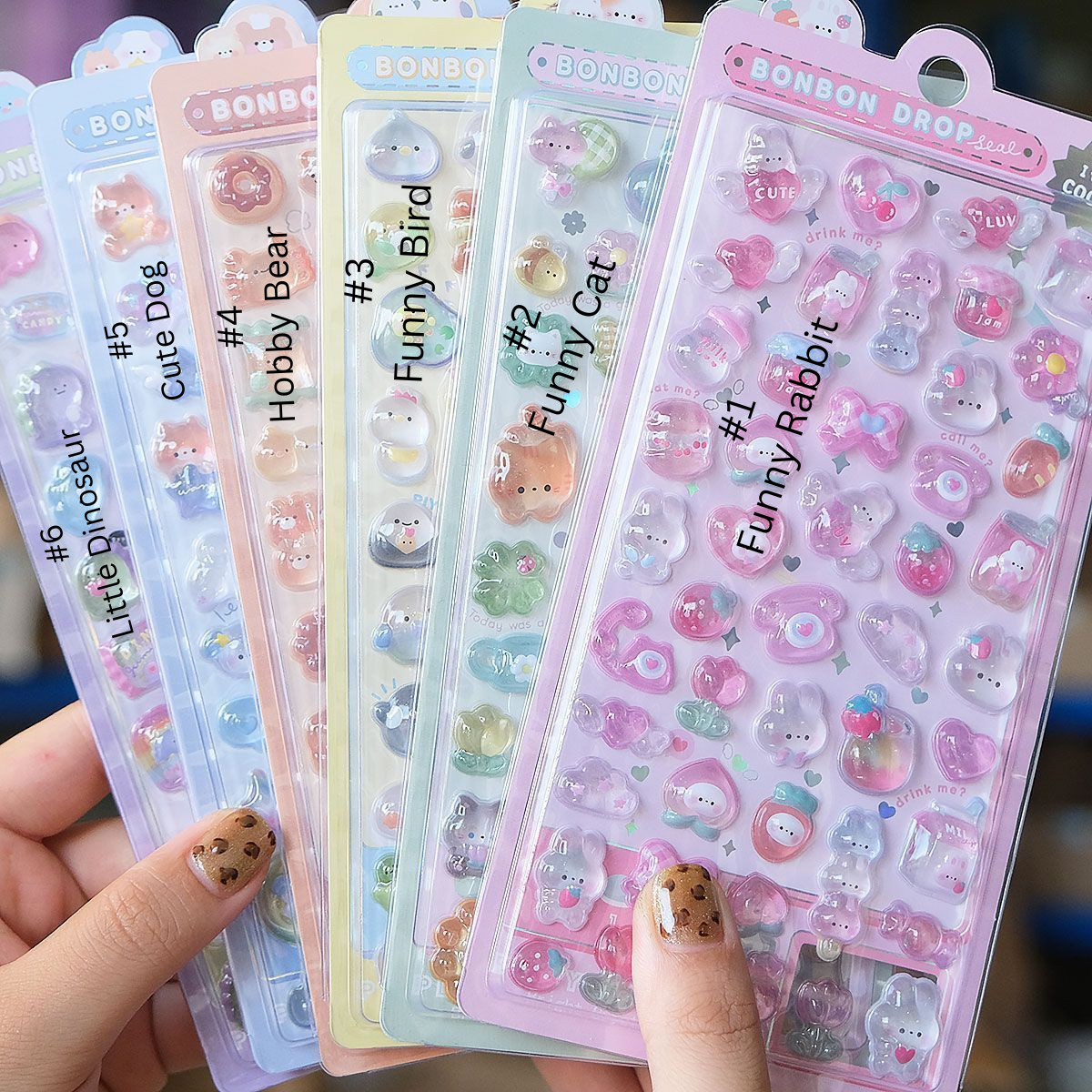 These trendy 3D cartoon embossed stickers feature adorable hollow designs that add a fun, lively touch to any notebook, phone case, or diary. With their bright colors and cute patterns, they’re perfect for decorating or using as reward stickers for kids. The raised 3D texture gives a unique, eye-catching effect, making every surface more playful and creative. A must-have for sticker collectors and stationery lovers.