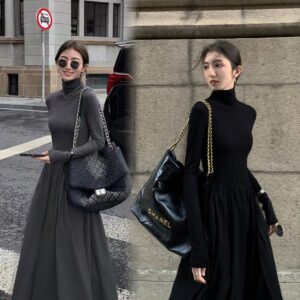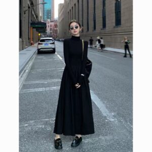 Elegant Audrey Hepburn-Inspired Midi Dress for Women | Korean Slim-Fit Long Skirt