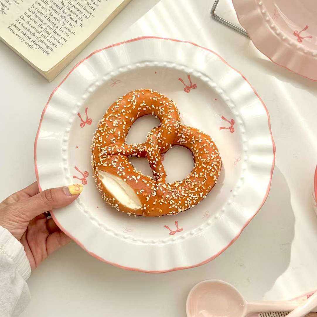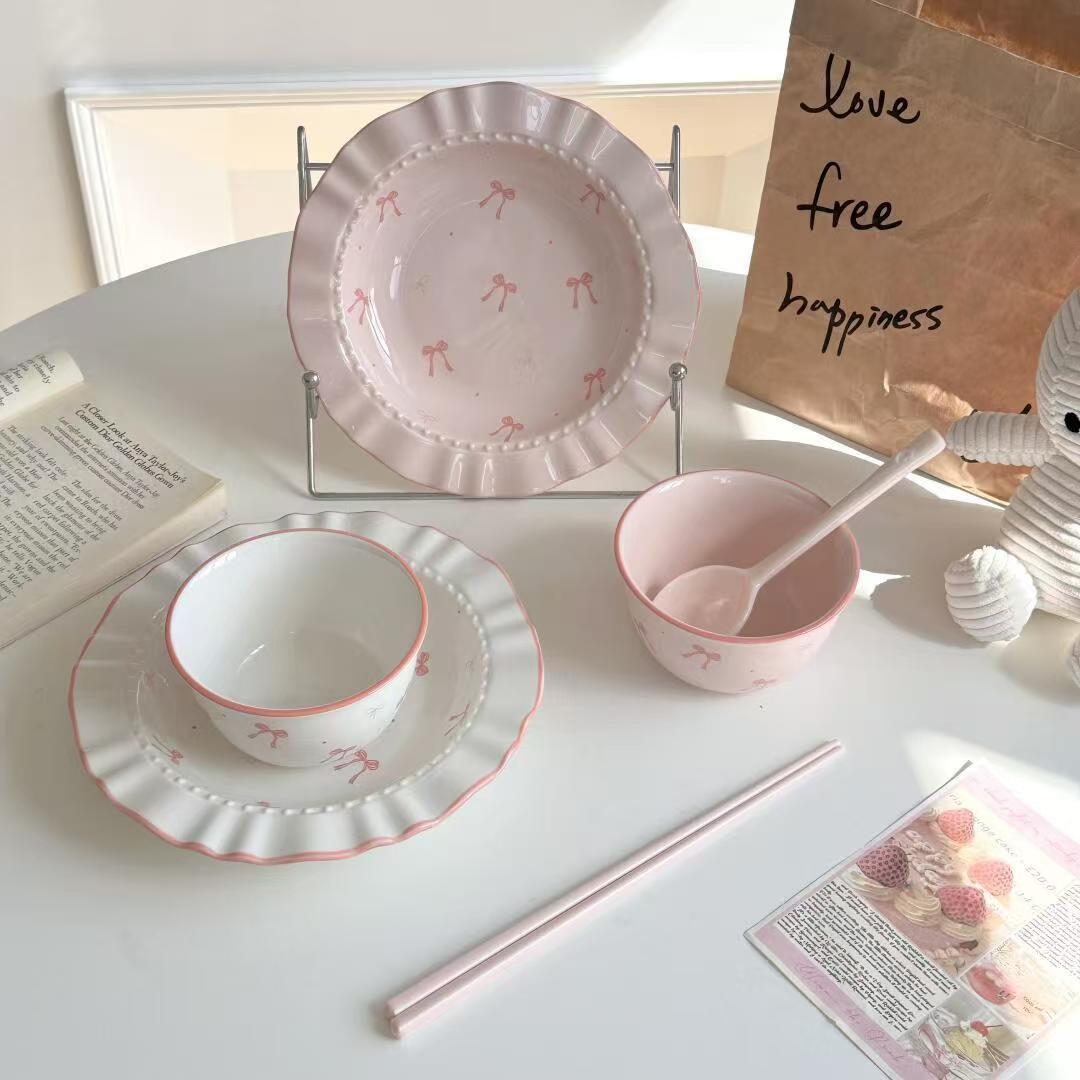 Elegant Bow Ceramic Dinnerware Set – Wavy Edge INS Style