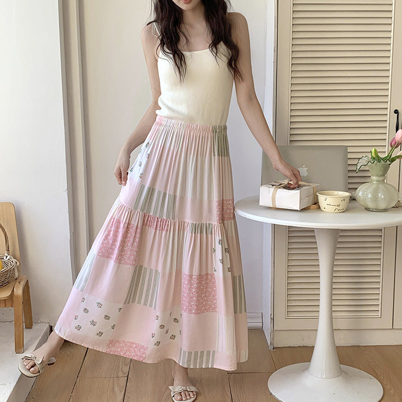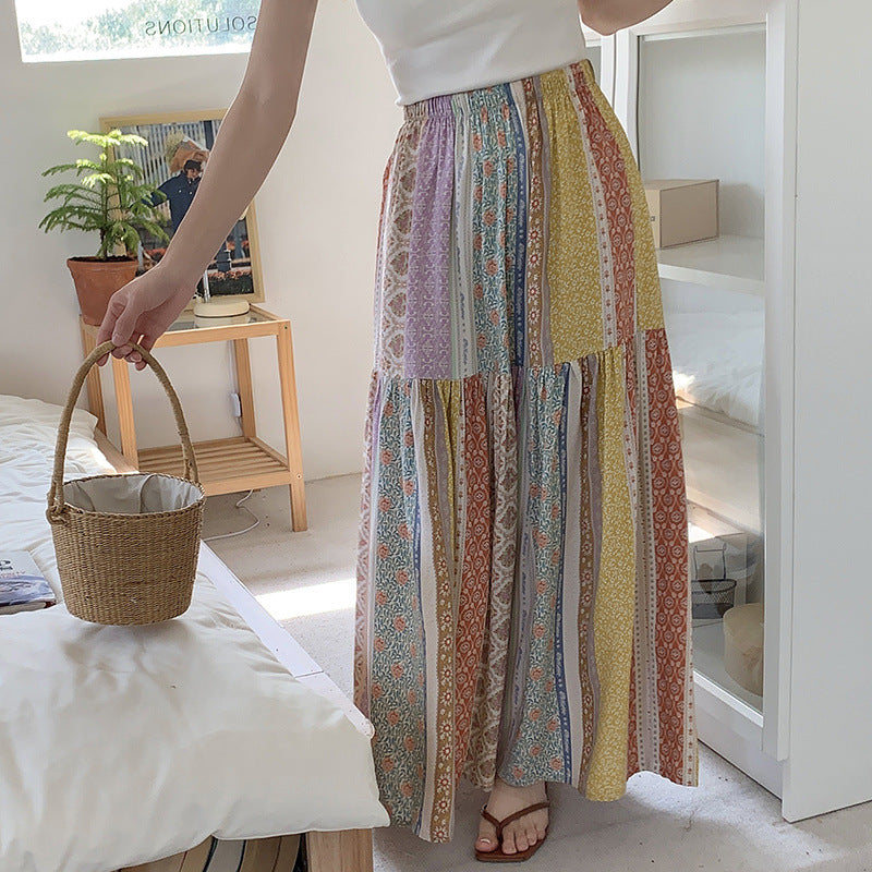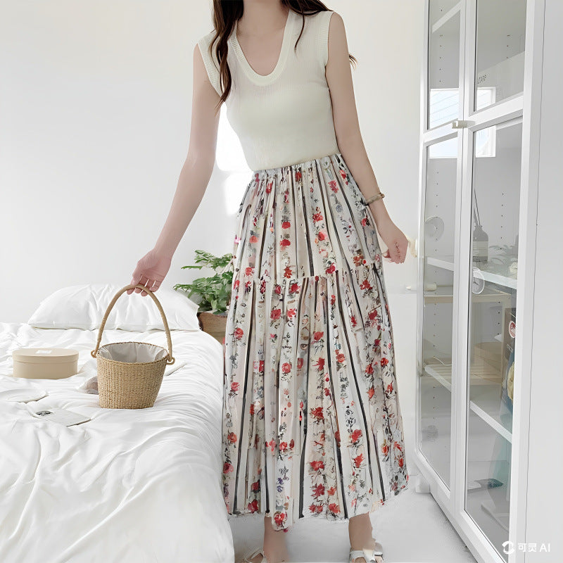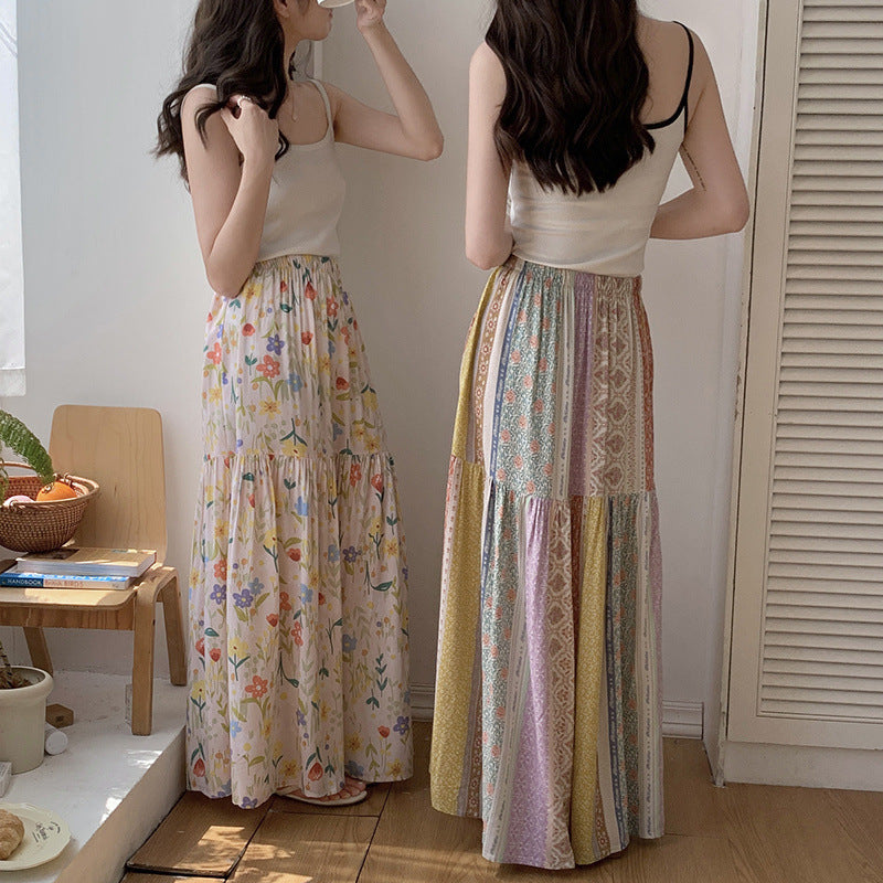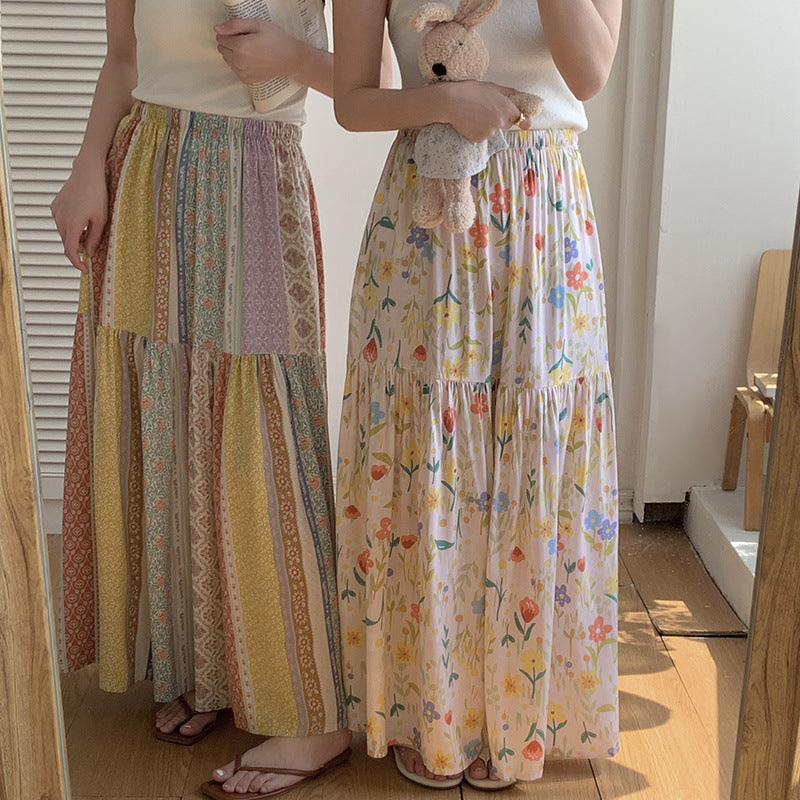 Floral Cotton-Silk Loose Skirt