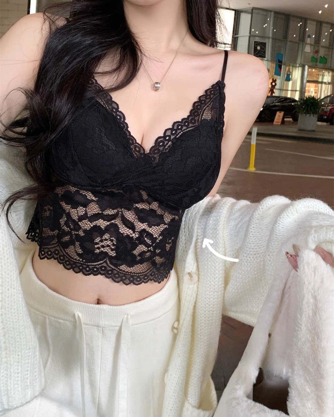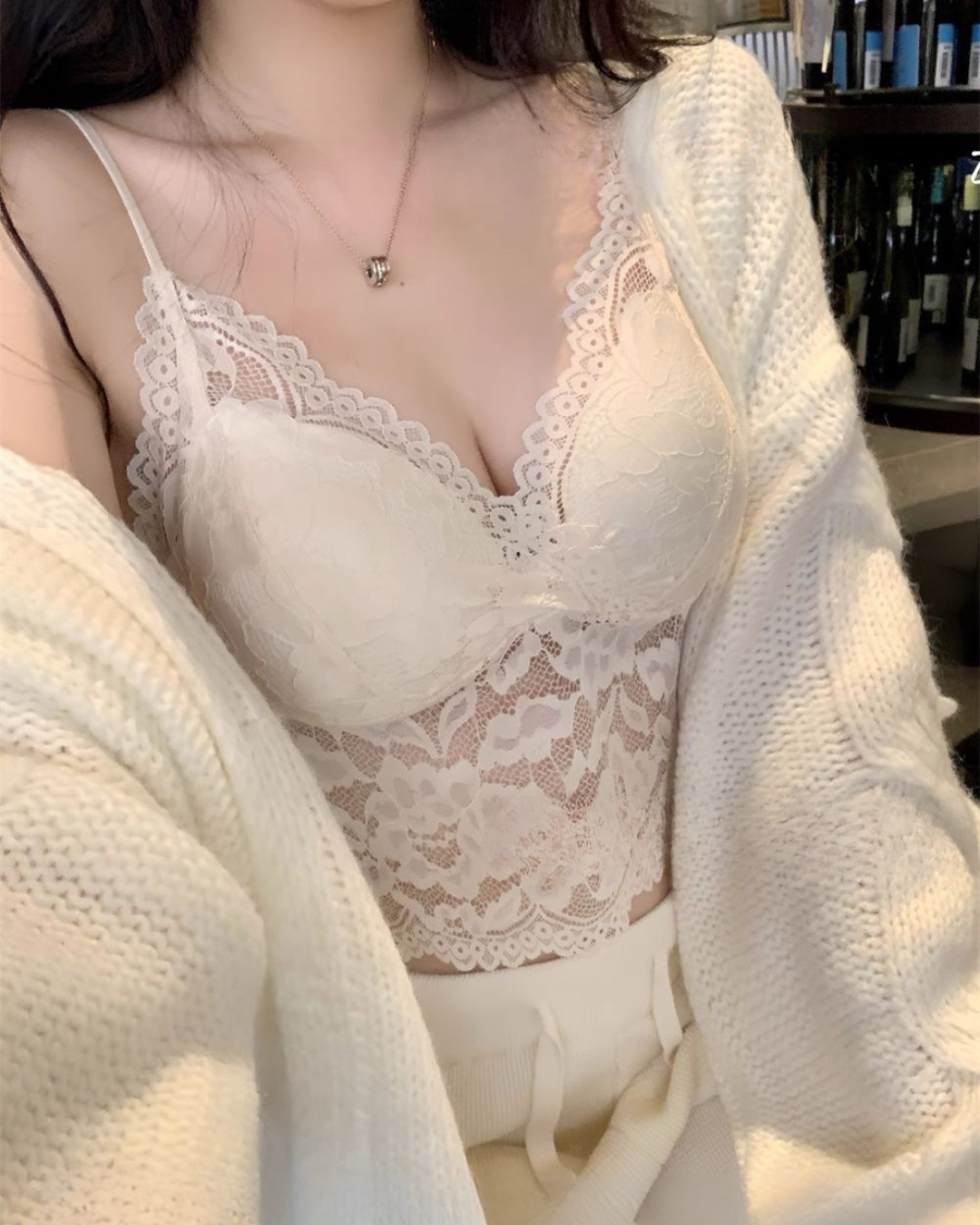 This lace camisole is designed as a stylish layering essential that blends softness with confident allure. Featuring delicate French-style lace and a built-in padded bra, it offers light support without the need for extra layers. The short length creates a flattering silhouette, while the beautiful back design adds a subtle statement from every angle. Comfortable, breathable, and easy to style, this camisole pairs effortlessly with shirts, jackets, or worn alone for a chic and versatile look.