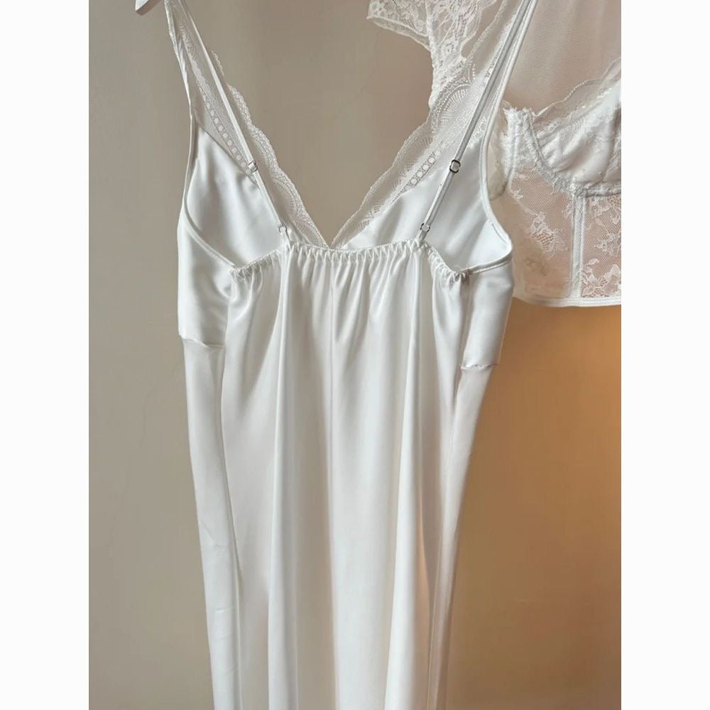 French Lace Silk Nightdress – Sexy Loungewear with Padded Bra