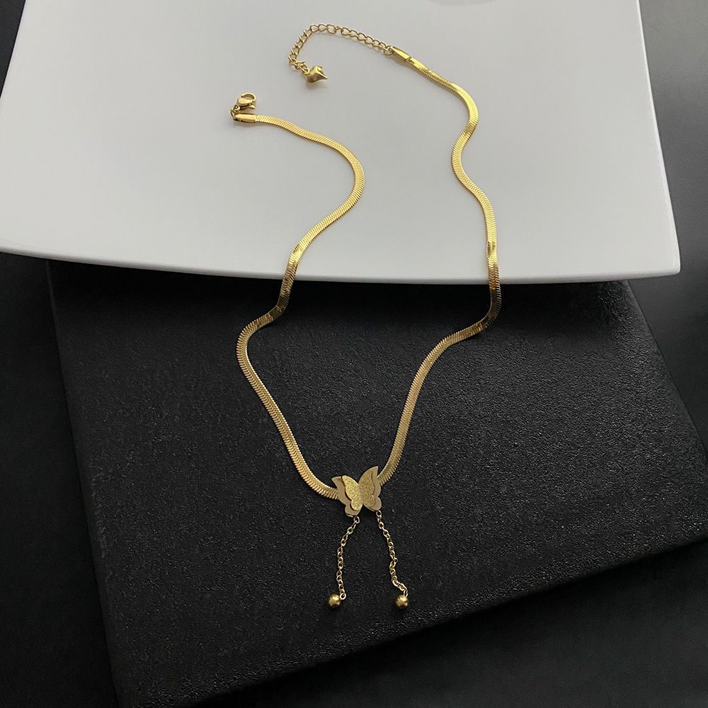 Gold Matte Butterfly Tassel Choker – Titanium Steel Snake Chain Necklace