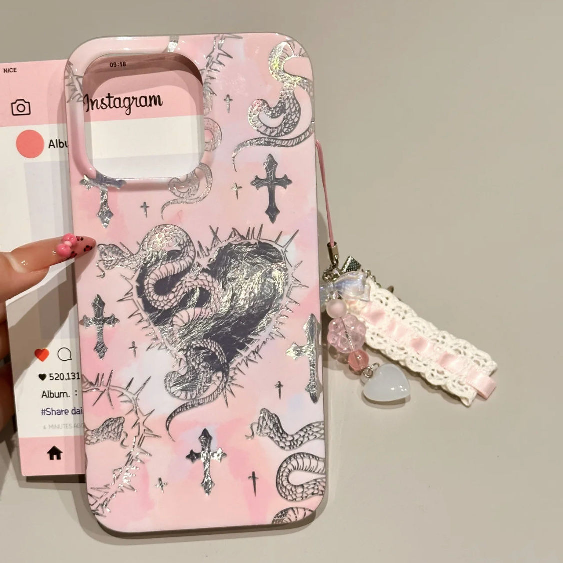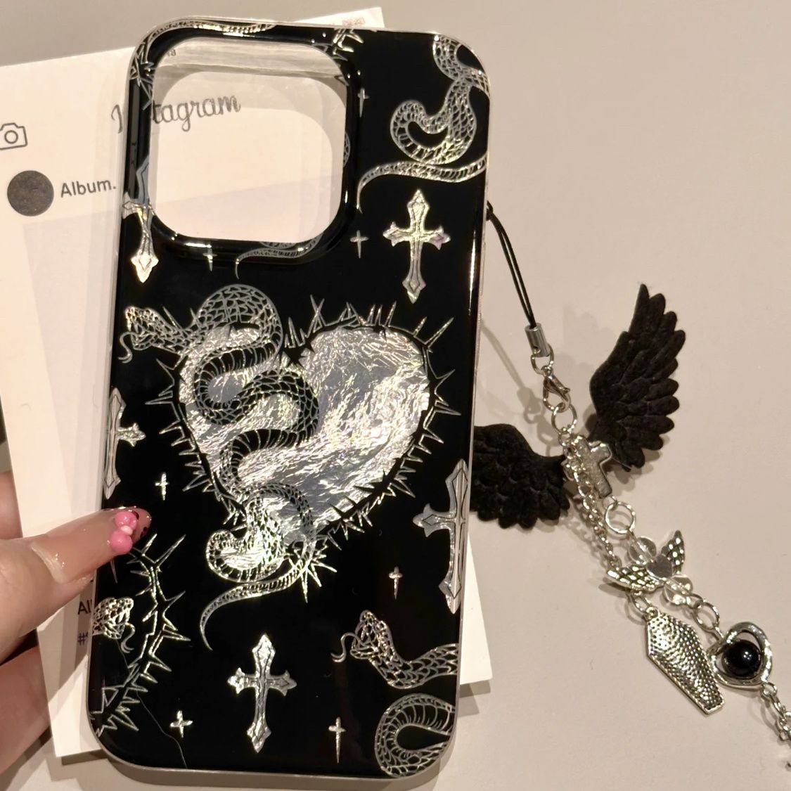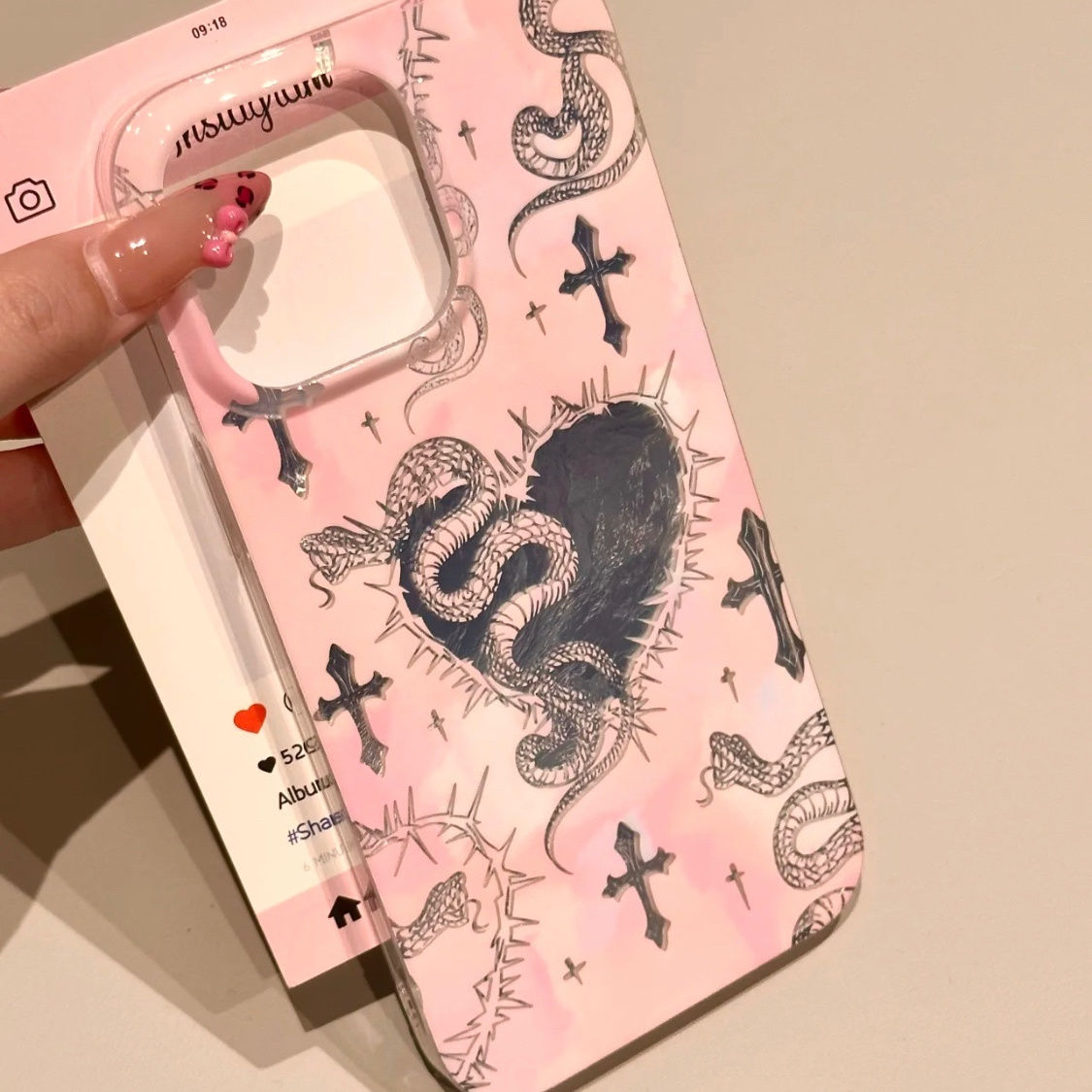 Gothic Cross & Snake iPhone Case – Dark Aesthetic, Matte Finish
