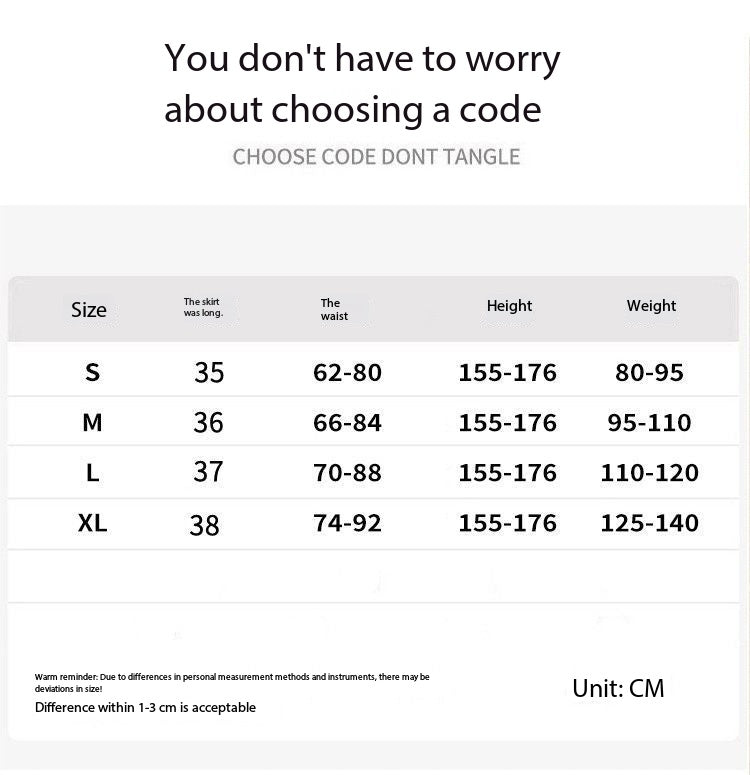 | Size | Skirt Length | Waistline | Height | Body Weight |