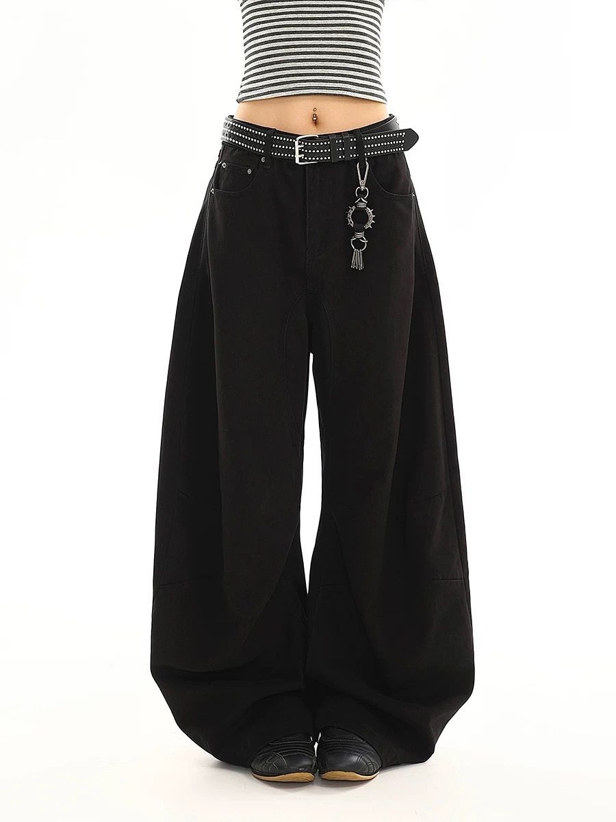 These high-waist curved-leg casual pants feature a clean fit silhouette with a relaxed and modern feel. Designed with a smooth draping fabric, they create a naturally slimming effect while offering all-day comfort. The loose cut allows easy movement and suits a wide range of body types, making them ideal for both men and women. Simple yet versatile, these trousers pair effortlessly with basic tops, sweaters, or outer layers, making them a practical and stylish choice for everyday wear.