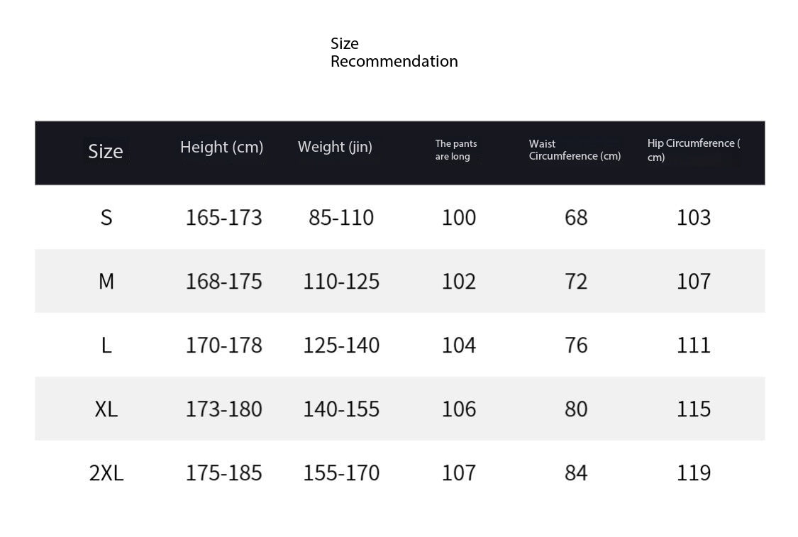 | Size | Height | Weight | Pants Length | Waist | Hip Circumference |