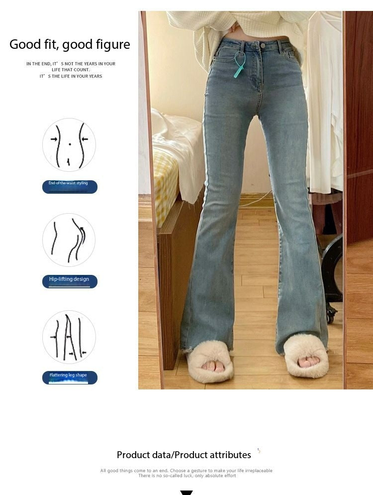 Designed to sculpt and elongate, these high-waist micro flare denim pants feature a slim fit through the hips with a subtle flared leg for a flattering silhouette. The stretch denim offers comfort and flexibility, making them suitable for curvy and plus-size figures. A raw hem finish adds a modern edge, while the floor-length cut enhances leg lines. Finished with a durable YKK zipper, these jeans balance style, comfort, and everyday wearability. Perfect for pairing with fitted tops or statement outerwear.
