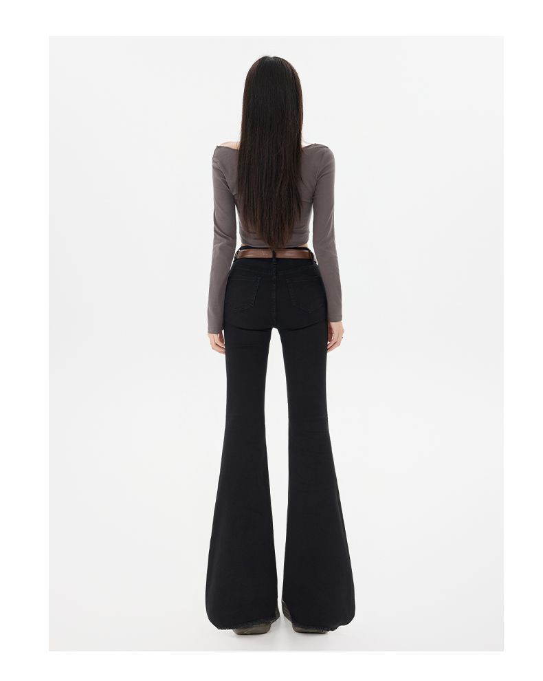 High Waist Stretch Micro Flare Raw Hem Denim Pants