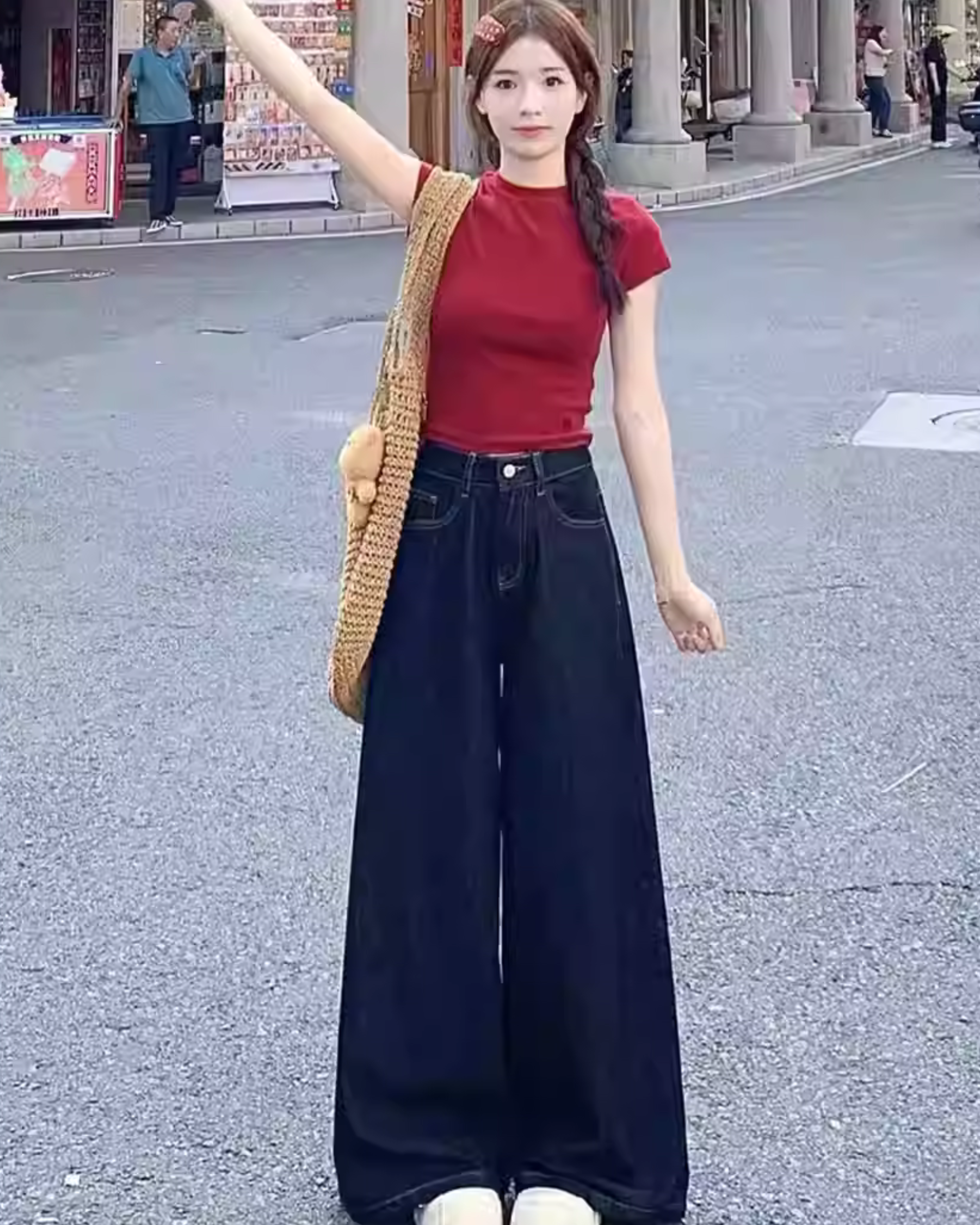 Step into effortless style with these vintage-inspired plus size wide-leg jeans, designed for a flattering and comfortable fit. Crafted for spring and summer wear, the high-waist silhouette enhances your curves while providing a slimming effect. The loose, straight-leg design flows into a chic floor-length cut, creating a relaxed yet fashionable look. Made from soft, breathable denim, these jeans are perfect for everyday wear or casual outings. Pair them with crop tops, blouses, or tees for a trendy American retro vibe. A must-have staple for curvy women seeking both comfort and style.