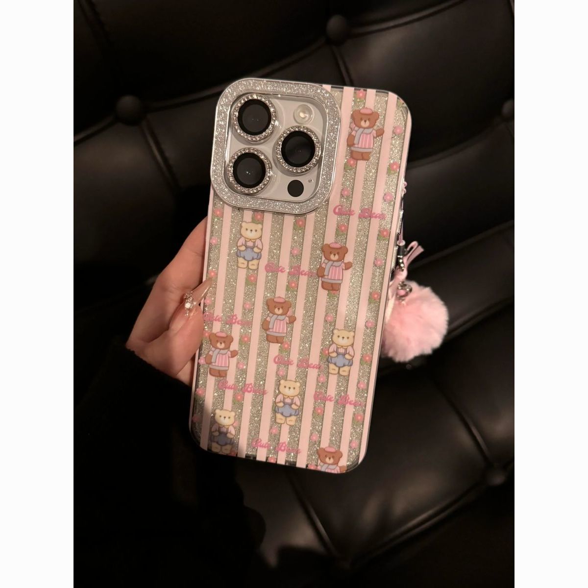 Japanese glitter striped bears phone case