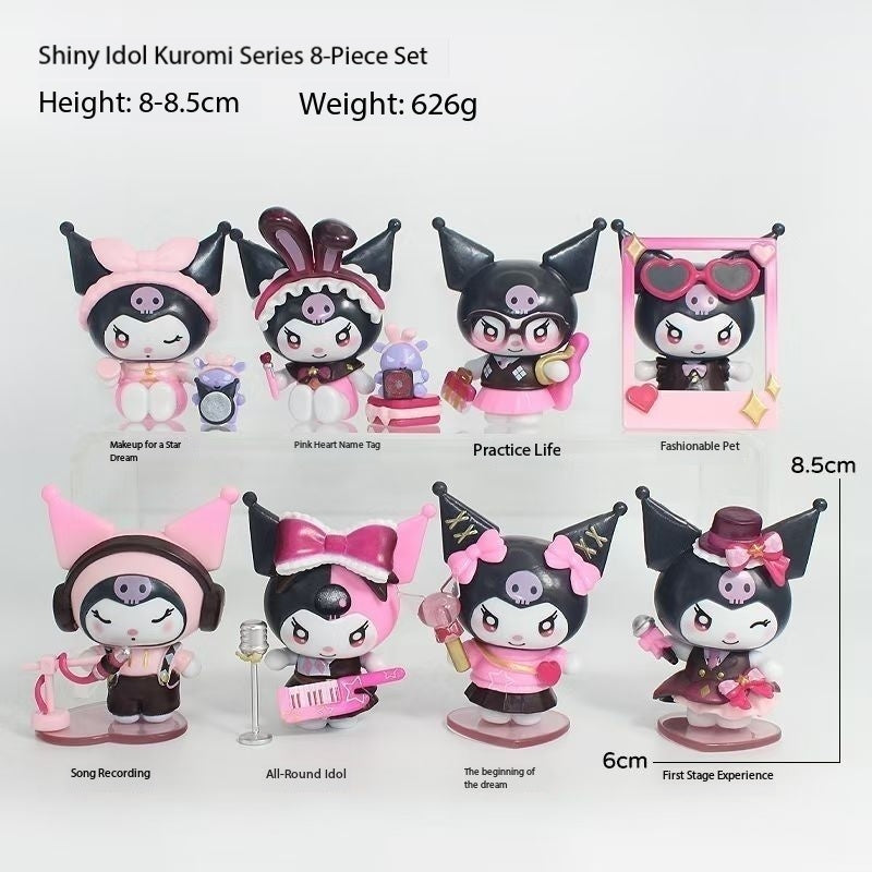 This Kuromi sparkly idol series figurine features a charming design with shimmering details that bring a playful and lively touch to any space. Crafted with fine detailing and a smooth finish, it makes a delightful addition to desks, shelves, or display cabinets. Compact and eye-catching, this figurine is perfect for decorating personal spaces or gifting to collectors and fans. Its cute expression and vibrant styling add personality and joy to everyday surroundings.