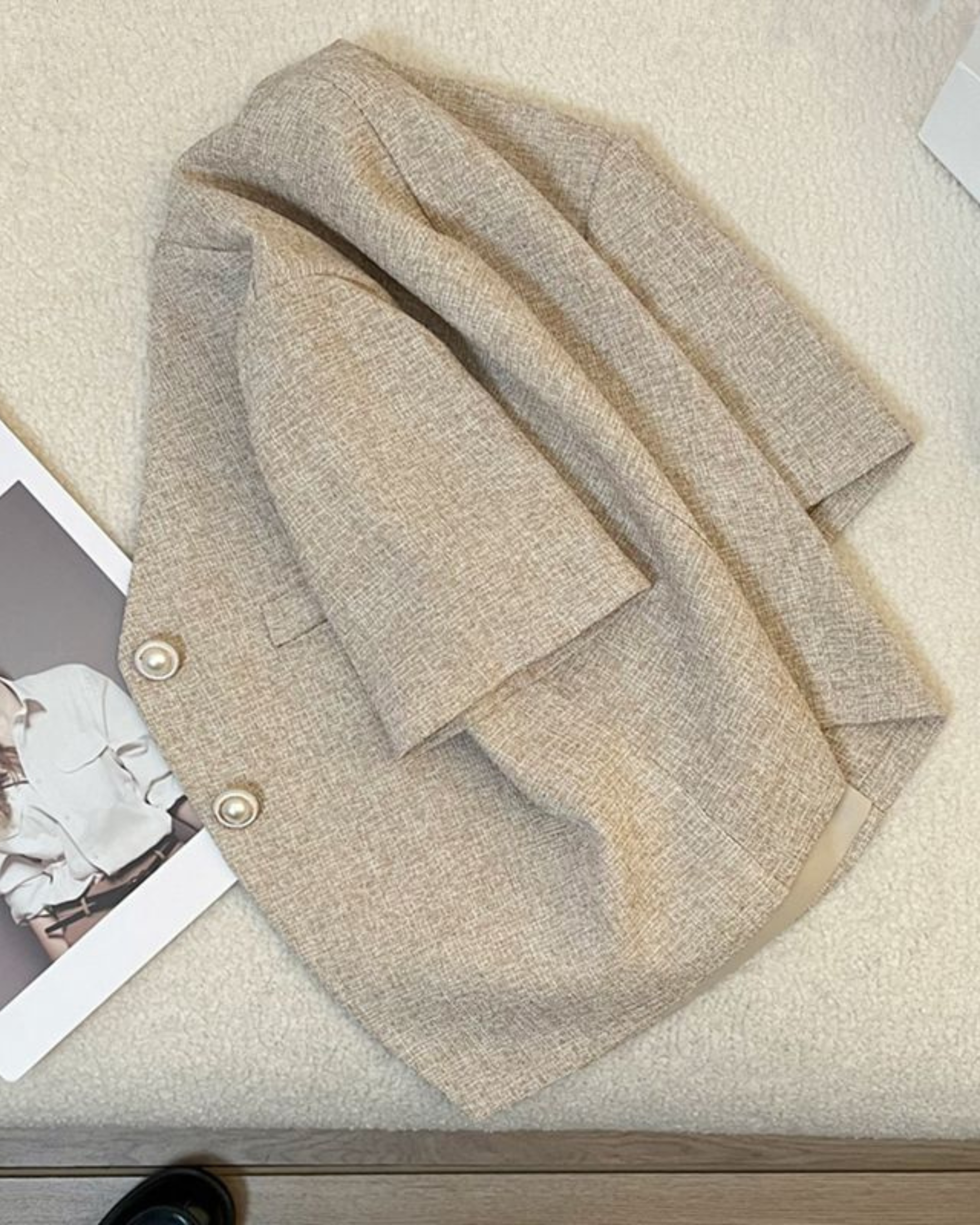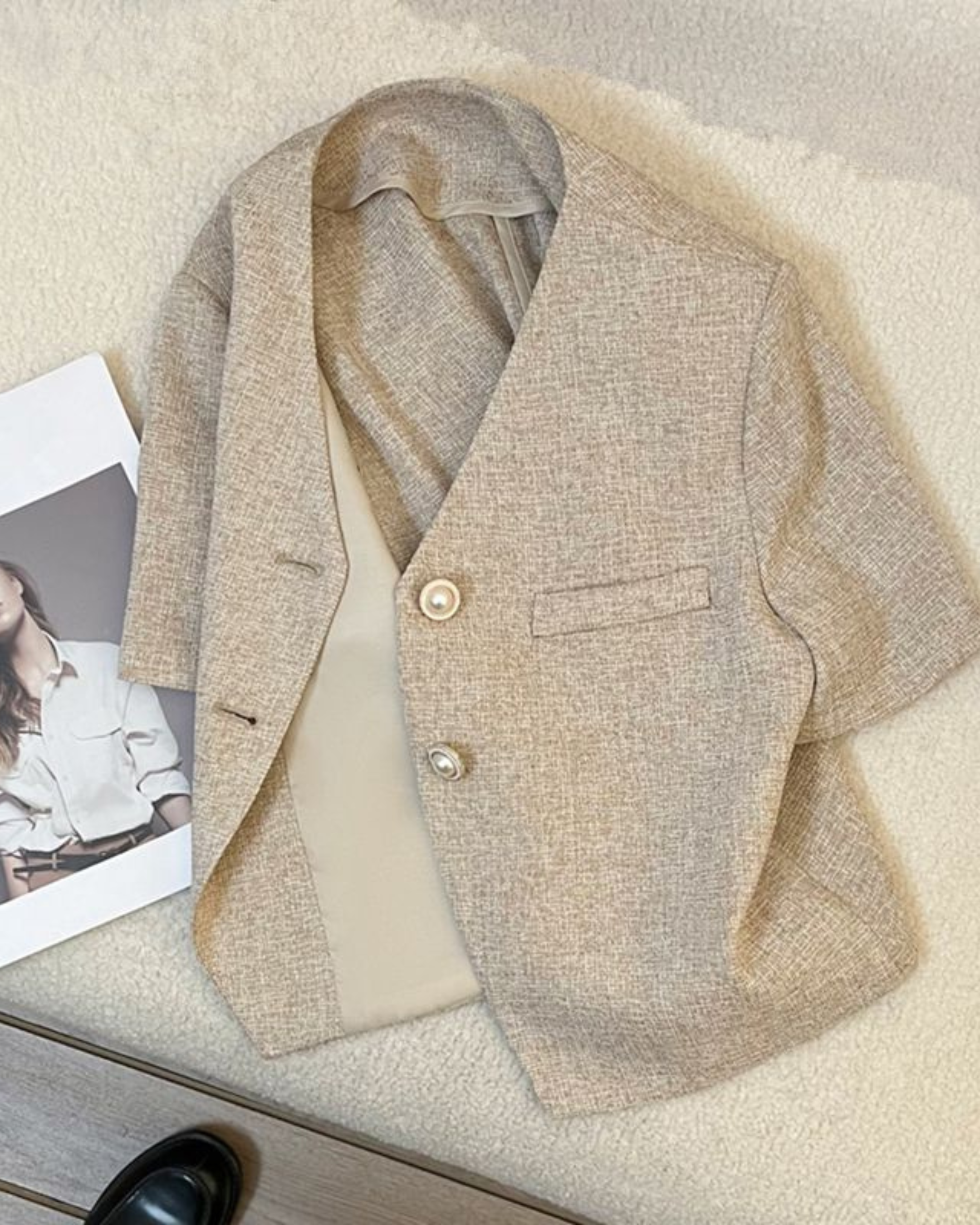 Light Coffee Short Sleeve Cropped Tweed Blazer Elegant Women Top
