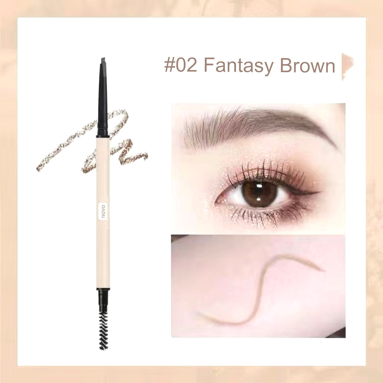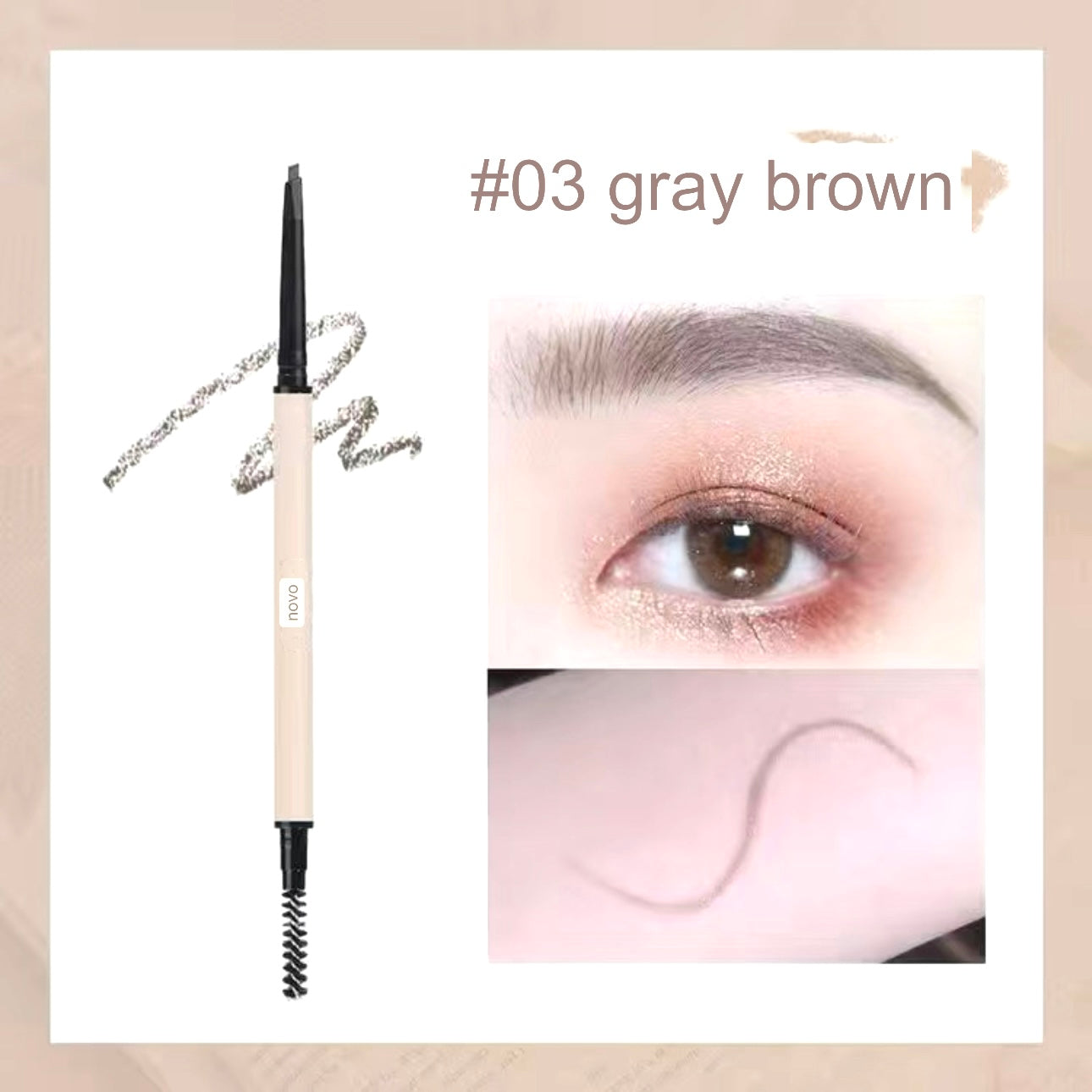 Unleash the power of perfectly sculpted brows with Novo Eyebrow Pencil. Our precision-crafted formula and fine-tipped pencil allow you to effortlessly define and shape your brows, achieving a flawless and natural look. Whether you prefer soft, subtle arches or bold, statement brows, Novo Eyebrow Pencil provides the control you need for immaculate results. The long-lasting formula ensures your brows stay on point throughout the day, while the convenient design makes it an essential tool for your beauty arsenal. Elevate your eyebrow game with Novo – where precision meets perfection for brows that steal the spotlight.