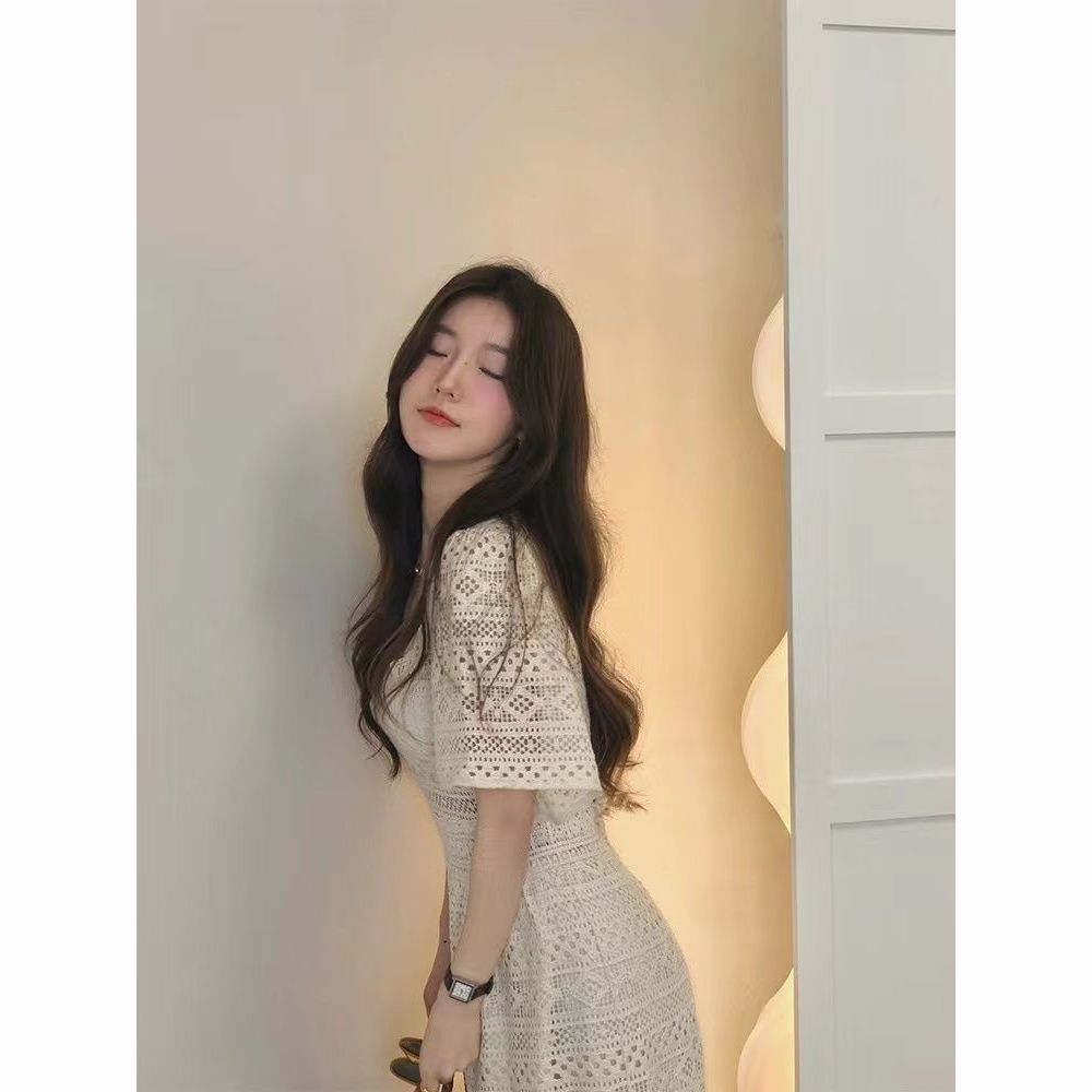 Tags: SALE, 夏季超仙复古方领蕾丝连衣裙女温柔高档感法式高腰镂空气质长裙子