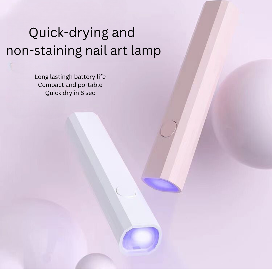 chieve flawless nails anywhere with this portable UV nail lamp. Featuring a sleek, one-bar design, this mini curing light is lightweight and compact, perfect for on-the-go touch-ups. Its rechargeable battery and high-focus UV light ensure efficient and fast drying for gel nails, delivering a professional finish in seconds. The durable build and stylish design make it an ideal companion for nail enthusiasts and professionals alike. Whether at home, in a dorm, or traveling, this handy tool fits in your bag effortlessly, providing salon-quality results whenever you need them. Upgrade your nail care routine with this must-have UV nail lamp.