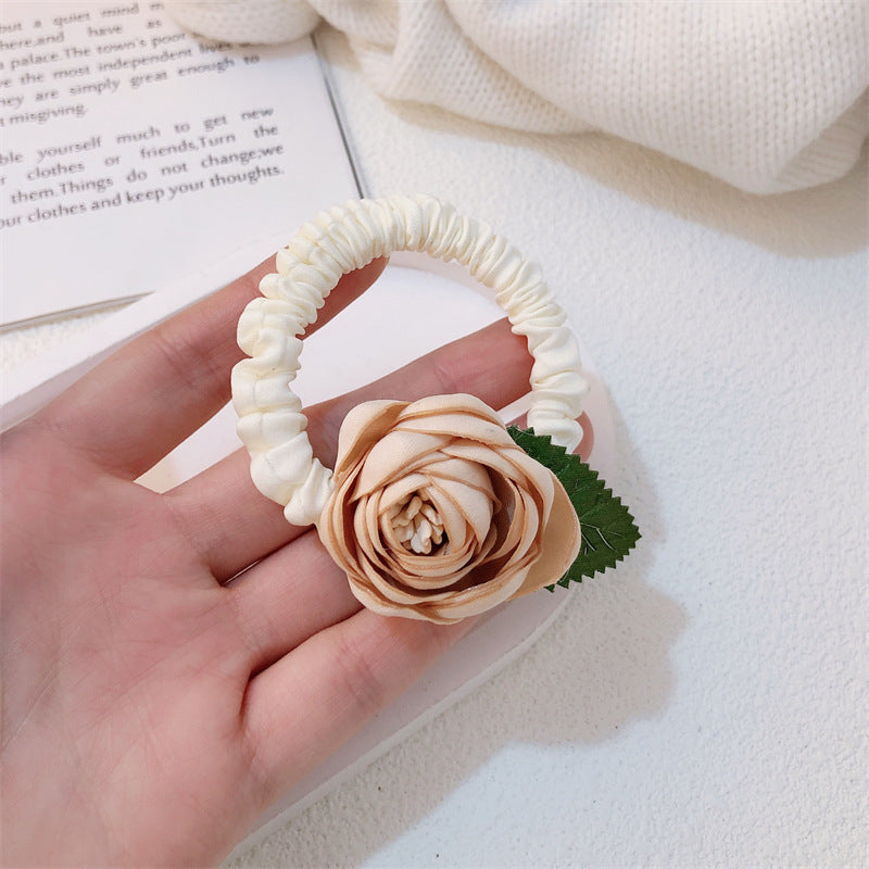 Rose Camellia Floral Scrunchie Hair Tie Elastic Hair Band