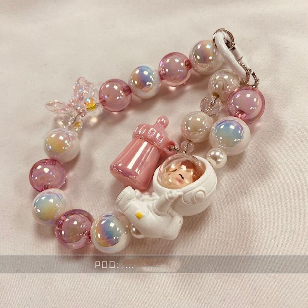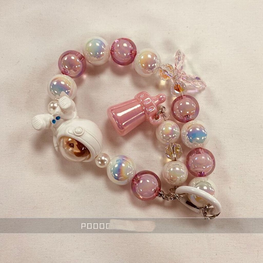 This charming bracelet features a fun 3D doll astronaut design with colorful beads. This Korean-style accessory doubles as a anti-lost keychain and phone charm, perfect for adding a touch of whimsy and functionality to your everyday outfits. Expertly crafted for durability and style.