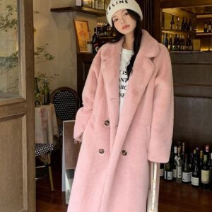 Eco-Friendly Faux Mink Fur Long Coat for Women, Thickened European Mink Fur, Loose Fit with Suit Collar